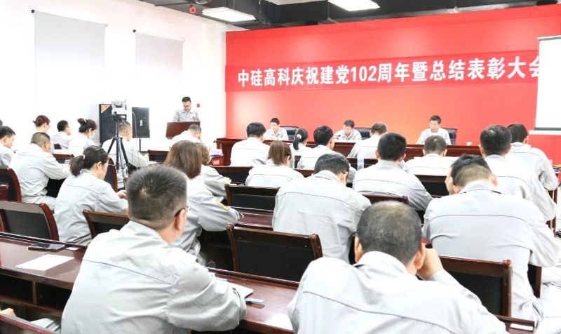 2023年6月28日上午,中硅高科在2#辦公樓三樓會(huì)議室召開慶祝建黨102周年暨總結(jié)表彰大會(huì)。會(huì)議由副董事長、黨委副書記、總經(jīng)理萬燁主持。董事長張合文作講話,黨委書記侯曉東作總結(jié)報(bào)告。